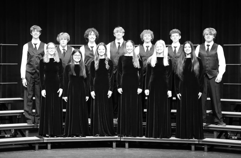 Royal Rhapsody is one of two advanced-level choirs. It is an auditioned group that sings higher caliber music and dives deeper into music theory and sight singing than beginning choirs. This group sings at one concert per quarter, in addition to performing at the ISSMA organizational contest, and at special events throughout the year. Show choir also involves a heavy rehearsal schedule and competitions during the “show choir season” in winter.